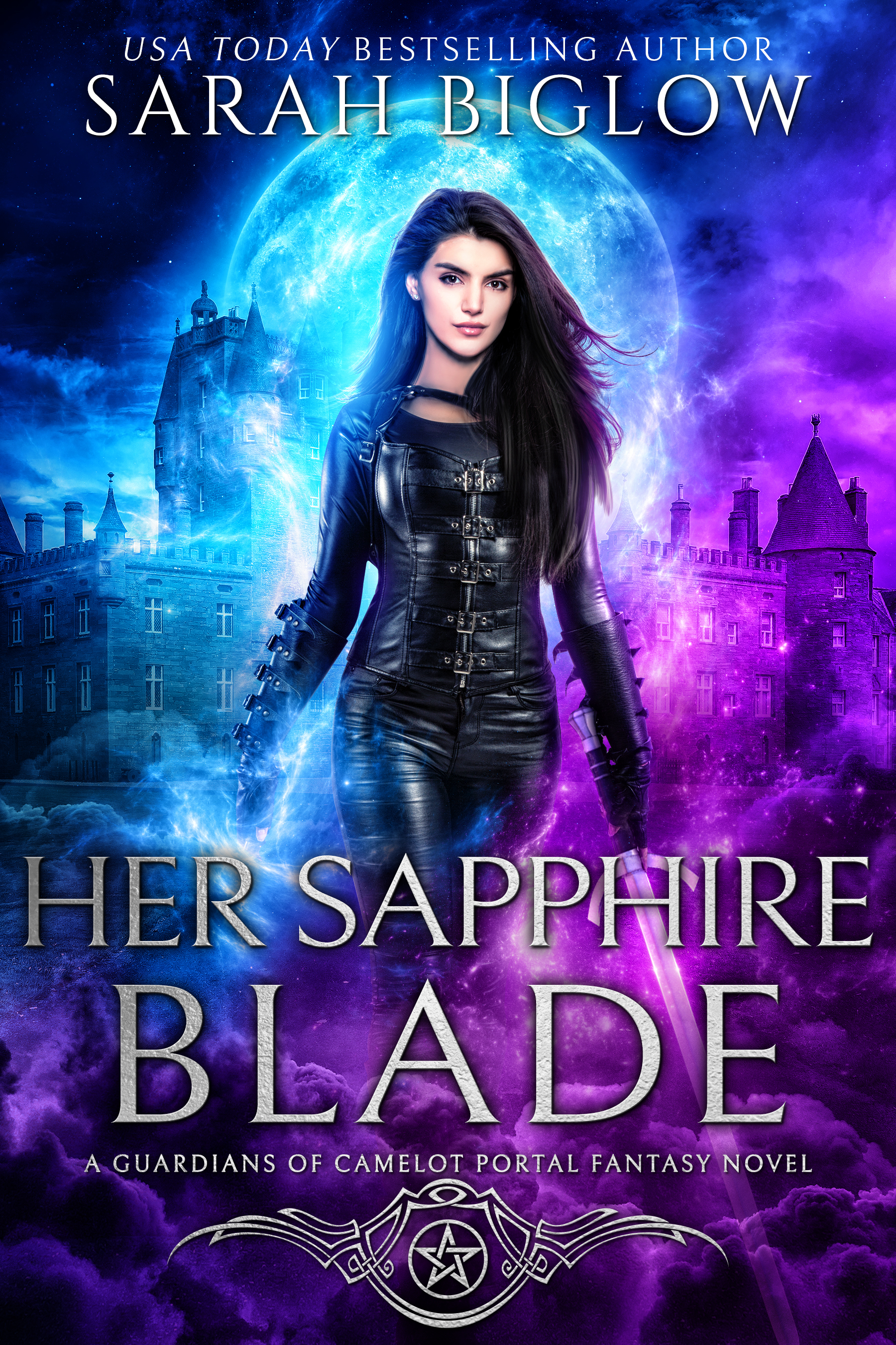 HER SAPPHIRE BLADE is the first book in the Arthurian-inspired Guardians of Camelot portal fantasy series by USA Today Bestselling Author Sarah Biglow and is part of the Seasons of Magic universe.