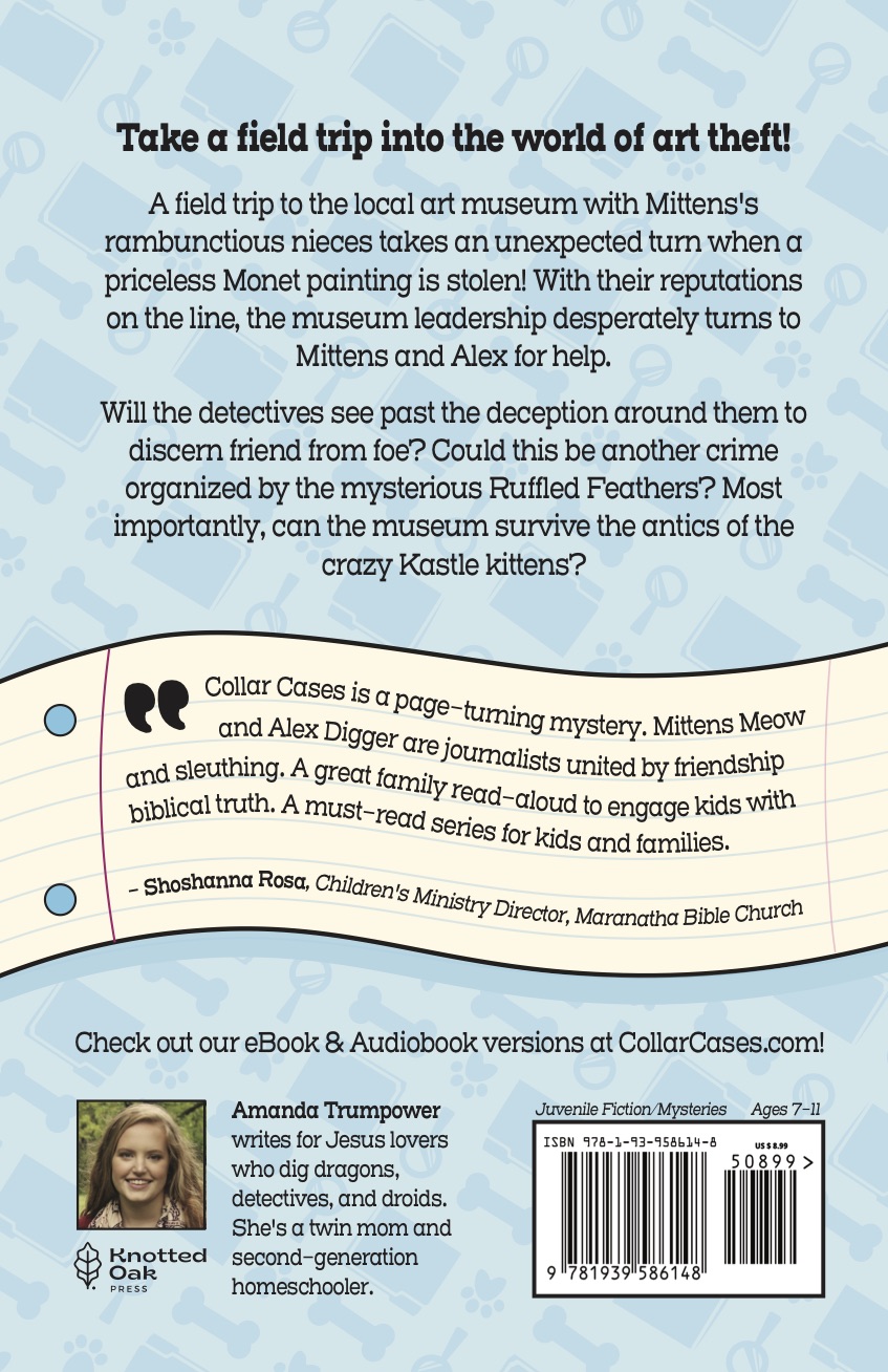 A field trip to the local art museum with Mittens's rambunctious nieces takes an unexpected turn when a priceless Monet painting is stolen! With their reputations on the line, the museum leadership desperately turns to Mittens and Alex for help. Will the detectives see past the deception around them to discern friend from foe? Could this be another crime organized by the mysterious Ruffled Feathers? Most importantly, can the museum survive the antics of the crazy Kastle kittens?