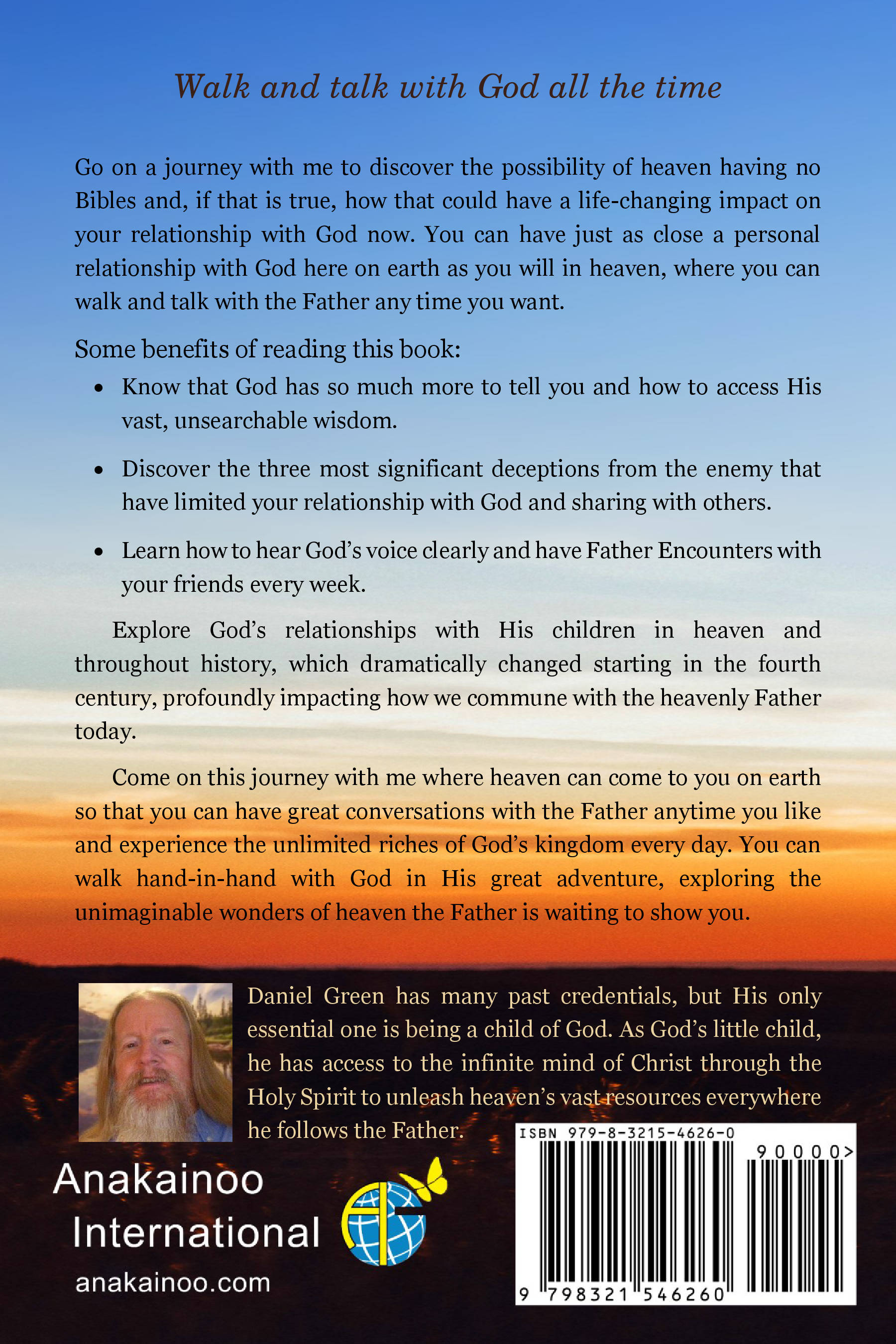 Discover how heaven having no Bibles could have a life-changing impact on your relationship with God now. Explore God’s relationship with His children in heaven and throughout history, which dramatically changed starting in the fourth century, profoundly impacting how we commune with the heavenly Father today. Have great conversations with the Father anytime you like and walk hand-in-hand with God in His great adventure, exploring the unimaginable wonders of heaven the Father is waiting to show you.